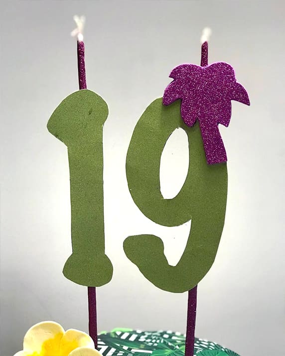 Una torta a tema tropicale per festeggiare i 19 anni con candeline personalizzate